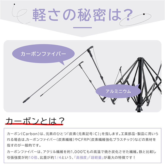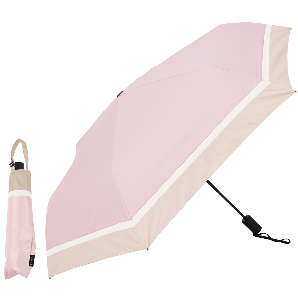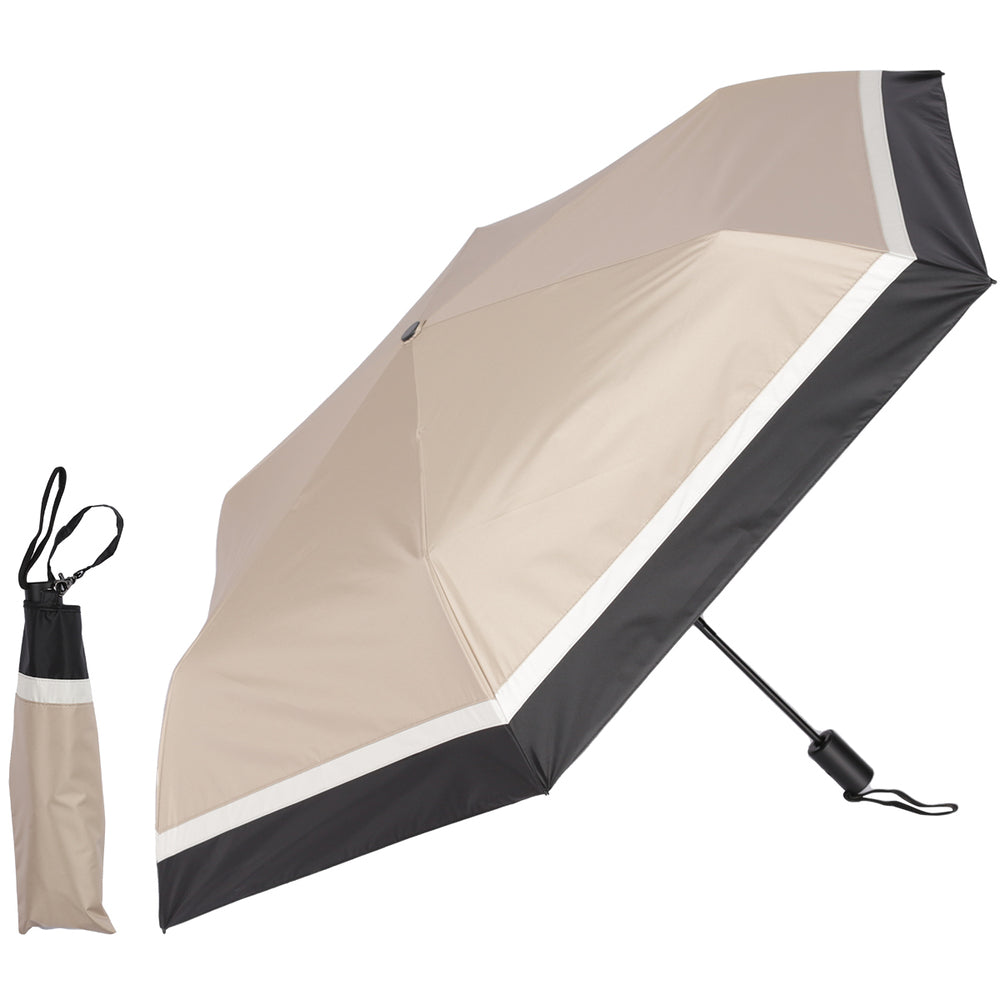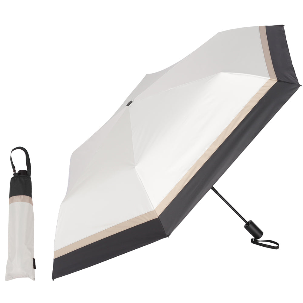 雨天也好,晴天也好,無論是工作還是休閒都能活躍!單手一鍵★自動開關的摺疊陽傘登場。【一鍵自動開關◎】單手一鍵★即使在行李多或和小孩一起的時候,只需按一下按鈕就能自動開關,真的非常方便!【工作與休閒皆可使用的設計】簡約而優雅的三色設計。每種顏色都很容易搭配,無論是工作還是休息都能隨時使用。【完全遮光與UV防護,阻擋陽光】晴天也能大派用場的陽光與UV防護功能。UV防護率與遮光率均為100%有效,能應對盛夏的強烈陽光。【超防水功能,牢牢彈開】雨滴能牢牢彈開的防水處理,獲得最高等級的5級認證。在天氣不穩定的日子裡,放在包包裡也能安心◎【附有易收納的收納袋】與傘布相同圖案的收納袋,配有手把的托特型。收納口寬大,取放順暢◎【可掛起來收納】附有繩子的設計,可以將傘掛起來收納。此外,收納袋的手把可以掛在包包上,取出方便極了。【自動開關也輕巧緊湊】傘的骨架使用碳纖維,實現高強度與超輕量化!收納袋的按鈕扣上後會更加緊湊。